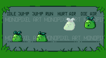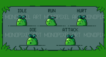 - Slime (Idle, Hurt, Die, Run, Idle Jump, Run Jump, AttackGround, Air Hurt, Air Die)